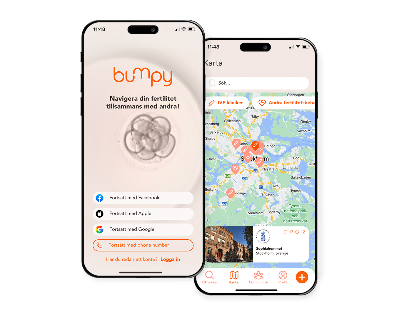 Om du kontaktar en fertilitetsklinik via vår plattform (app eller webbsida) och sedan bestämmer dig för att gå vidare med behandling, kan du informera Bumpy och få 5% återbäring för din behandlingskostnad.*